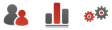 Zur Orientierung, aus welchem Bereich des Systems ein vorgeschlagener Treffer stammt, werden Ihnen die in [Abb. 2] gezeigten Icons am Anfang eines jeden Eintrags dargestellt. Diese sind von links nach rechts: Kundendatensätze, Statistiken, Einstellungen. Für die Bereiche Statistiken und Einstellungen unterbreitet das System jeweils maximal drei passende Vorschläge.