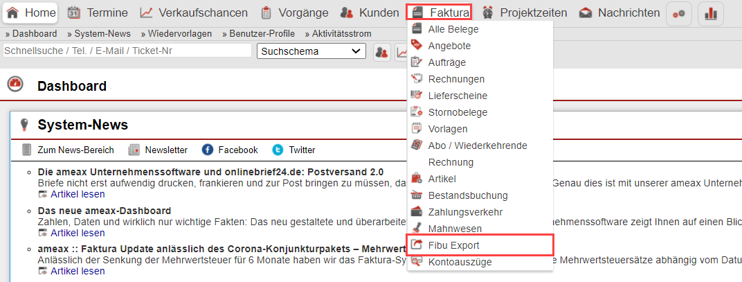 ![[Abb. 2]: Hier kommen Sie zum Bereich für den Export innergemeinschaftlicher Lieferungen. Screenshot Hauptmenübereich "Faktura" mit markiertem Punkt "Fibu-Export"](/News/news/318/cntimg/Export_fuer_die_Zusammenfassende_Meldung_fuer_innergemeinschaftliche_Lieferungen/Export_fuer_die_Zusammenfassende_Meldung_fuer_innergemeinschaftliche_Lieferungen_2.png)