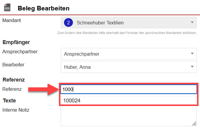 "Vorschlagsfunktion für Beleg-Referenznummern"